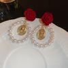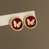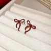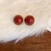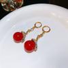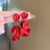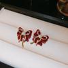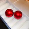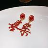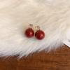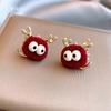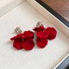 New Year's red flower flocking stud earrings women's niche earrings versatile earrings autumn and winter