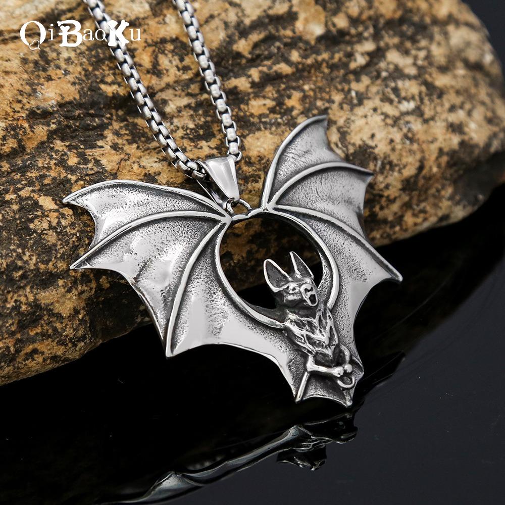 New Punk Stainless Steel Men's Necklace Titanium Steel Creative Accessories Retro Personalized Bat Pendant Halloween Gift