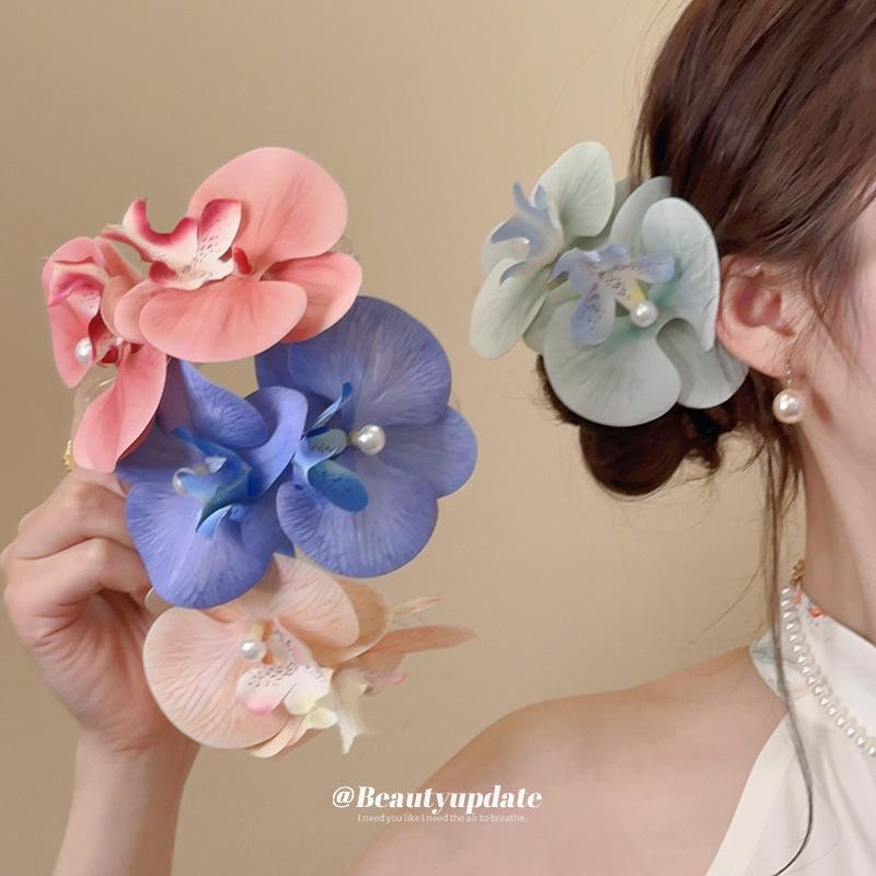Smudge fabric flower pearl hairpin versatile duck bill clip sweet niche temperament hair accessories wholesale