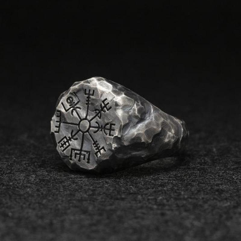 Retro Antique Viking Vegvisir Rune Compass Ring For Men Punk Gothic Open Ring Handmade Salior Accessories Creative Sea Gift