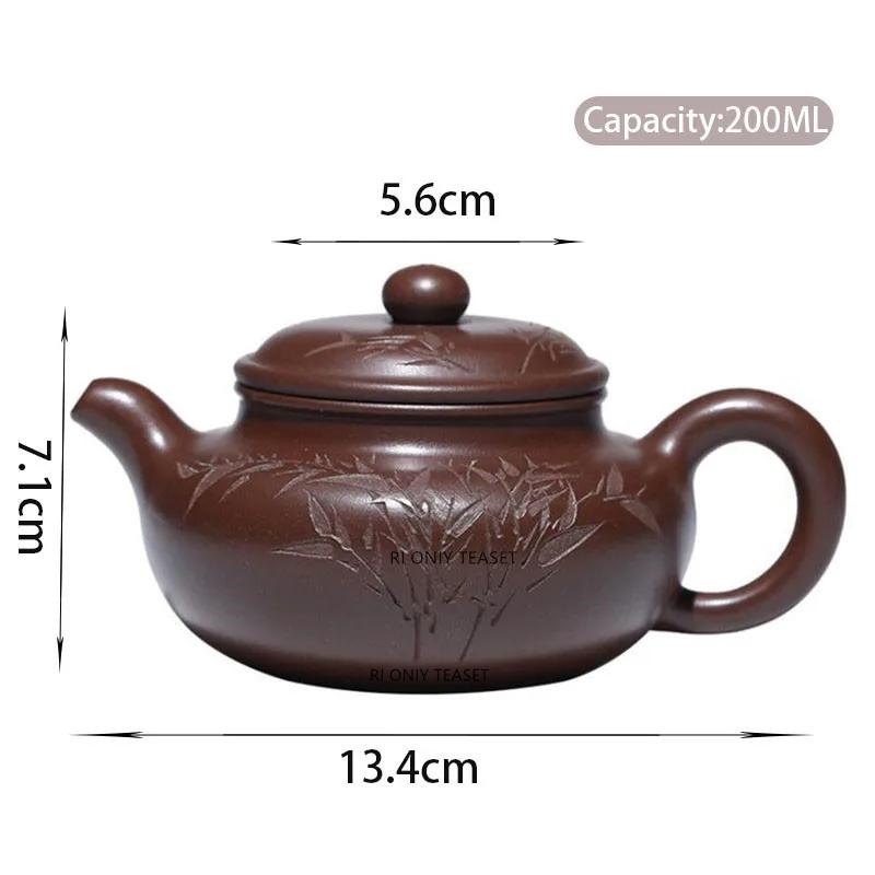 200ml Chinese Yixing Handmade Purple Clay Teapots Famous Hand-carved Bamboo Leaves Tea Pot Beauty Kettle Zisha Tea Set Teaware