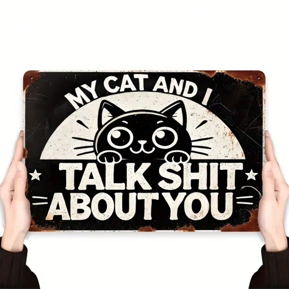 Metal Wall Art Sign Funny Vintage Home Decor Cat Theme Wall Hanging for Living Room Cafe Bar