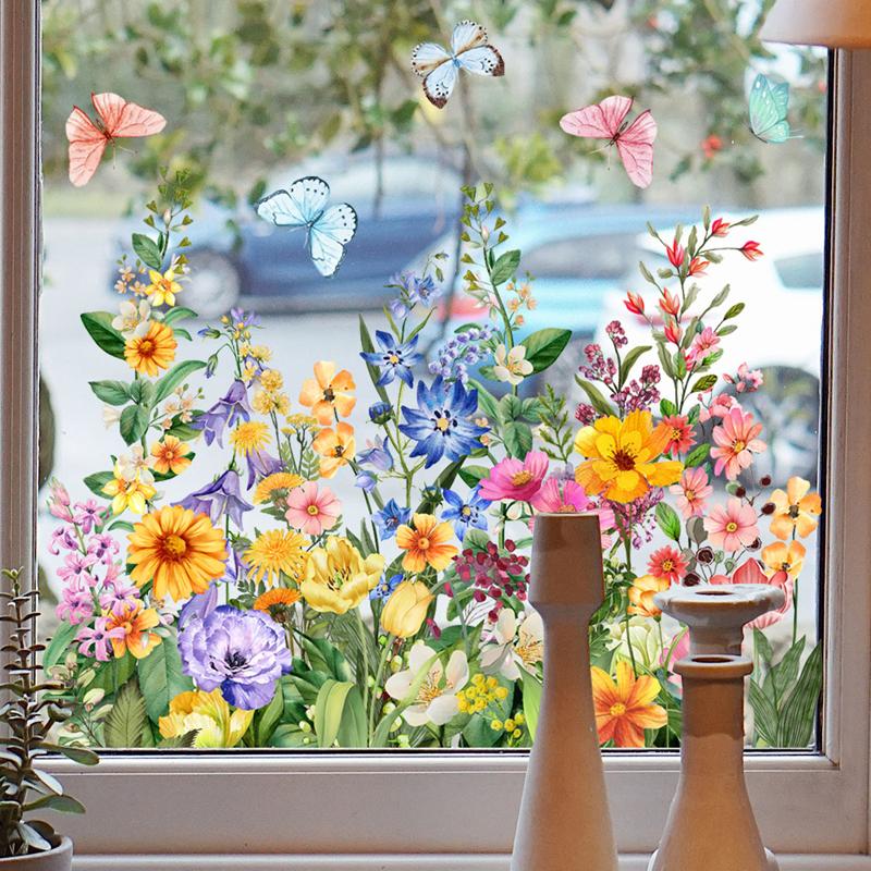 1PC PVC Removable Flower Window Stickers Daisy Tulip Butterfly Dragonfly Decorative Glass Stickers Static Stickers Home Decor
