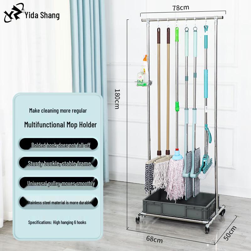 Stainless Steel Movable Mop and Broom Holder
