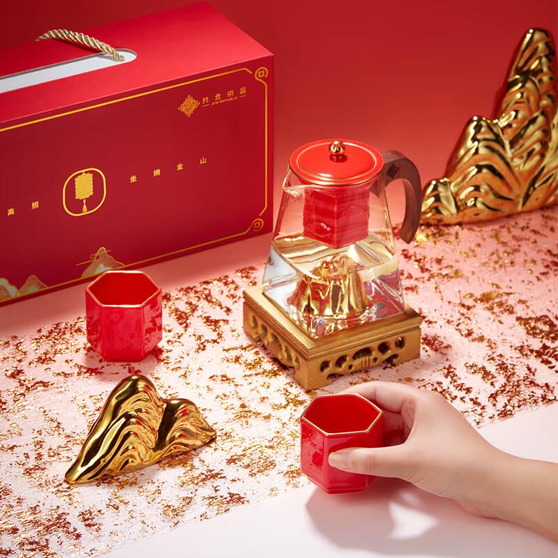 JINGREPUBLIC Lucky Golden Mountain Ceramic Tea Set
