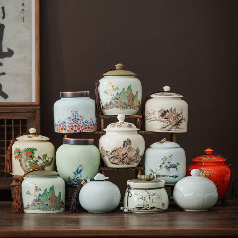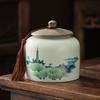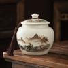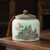 Vintage Mountain Scenery Pattern Ceramic Tea Caddy Moisture Seal Nut Candy Storage Jar Ink Ceramic Storage Bottle Art Decoration