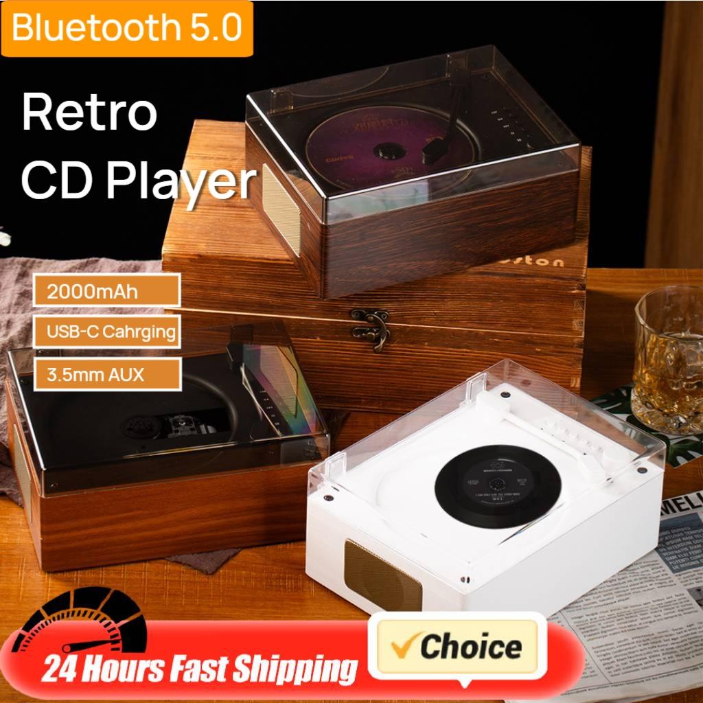 Retro CD Player USB-C Rechargeable Bluetooth 5.0 Speaker Portable Stereo CD Player Remote Control Home Music Player for Home