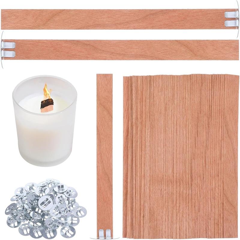 HHO-Thickened Wood Candle Wicks With Metal Base Naturally Wood Wicks For DIY Candles Making Easy To Burn