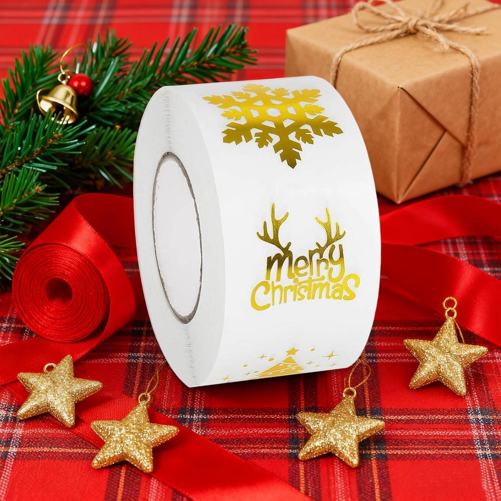 500pcs Clear Christmas Stickers Roll Seal Stickers Self-Adhesive Seals Label Decals for Holiday Invitations Cards Gift Decor