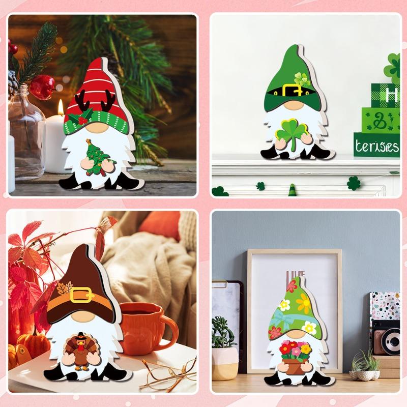 Interchangeable Gnomes Wooden Ornaments Tabletop Festival Decor with Changeable Clothes Christmas Holiday Home Decoration Set