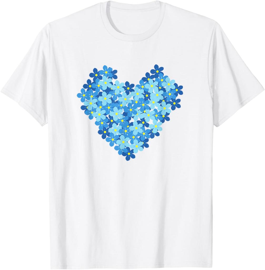 Blue Forget Me Not Flowers Heart T-Shirt Graphic Tee Casual Cotton Crewneck for Women Spring Summer