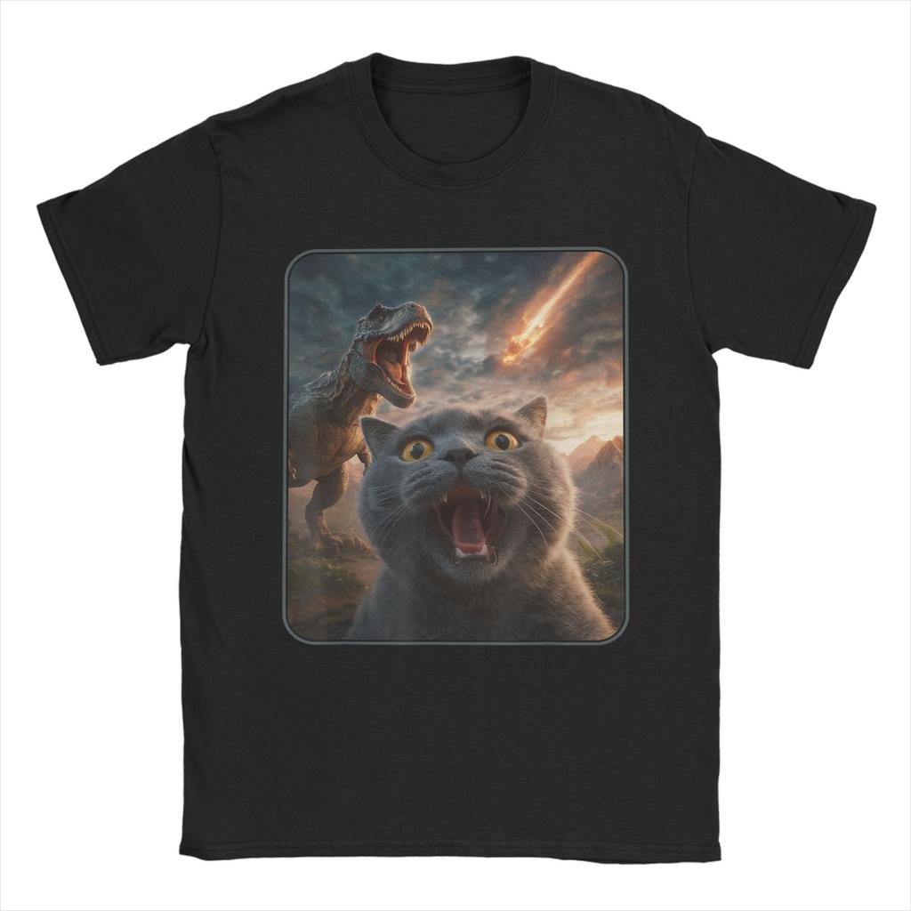 Vintage T-Shirt Cat with T-Rex Dinosaur Funny Cat T Rex Shirt Meme T-Shirts Novelty Tee Shirt for Summer Short Sleeve Clothing