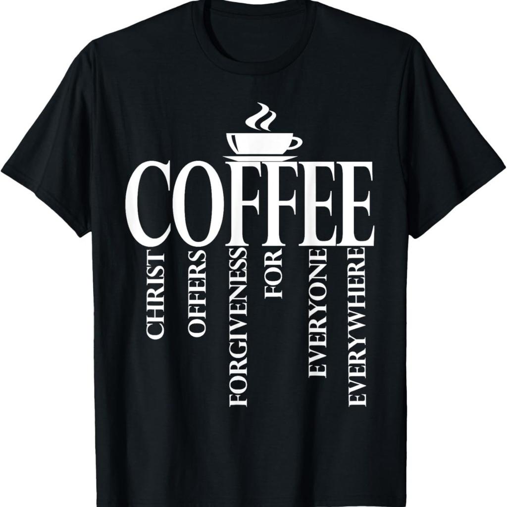 Christian Coffee Forgiveness T-Shirt Religious Graphic Tee Casual Cotton Top for Men Women