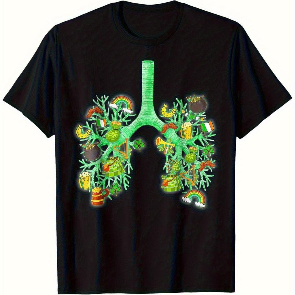 St Patrick Day Lung Graphic Tee Respiratory Therapist Nurse Irish Shamrock Print Casual T-Shirt Men Women