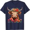 Cute Animal Cow Baby Highland Cow with Flowers Calf Women T-Shirt
