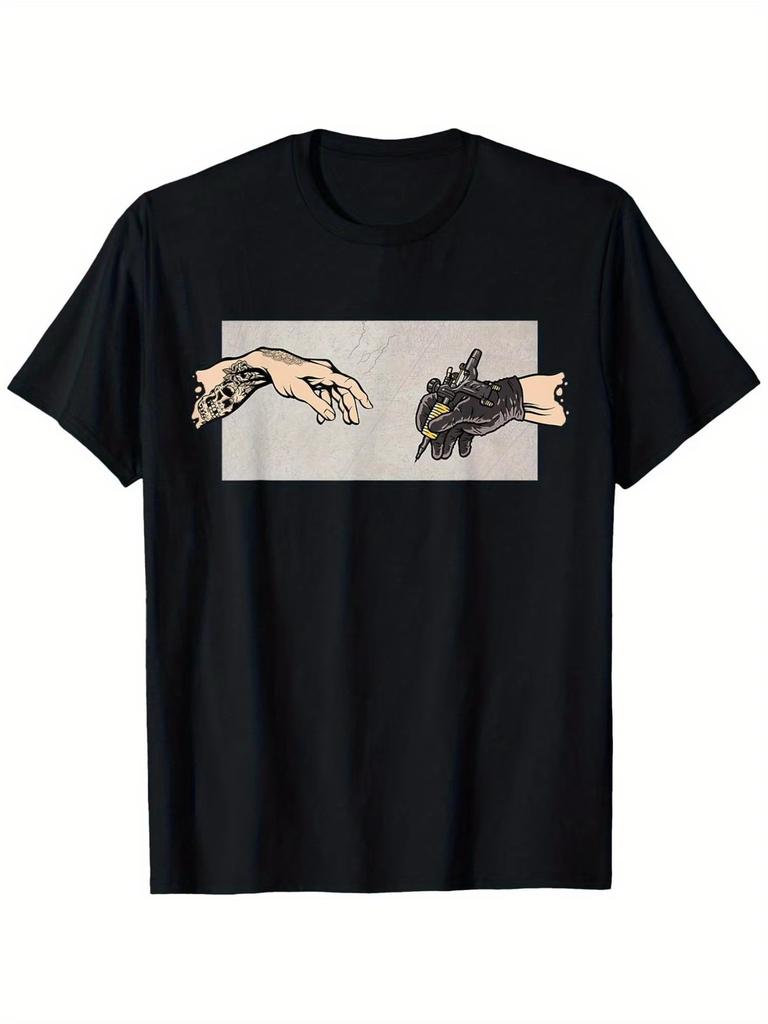 Men Black Graphic T-Shirt - Tattoo Artist Design with Hands Bird Everyday Special Occasion Tee Machine Washable Casual Shirt
