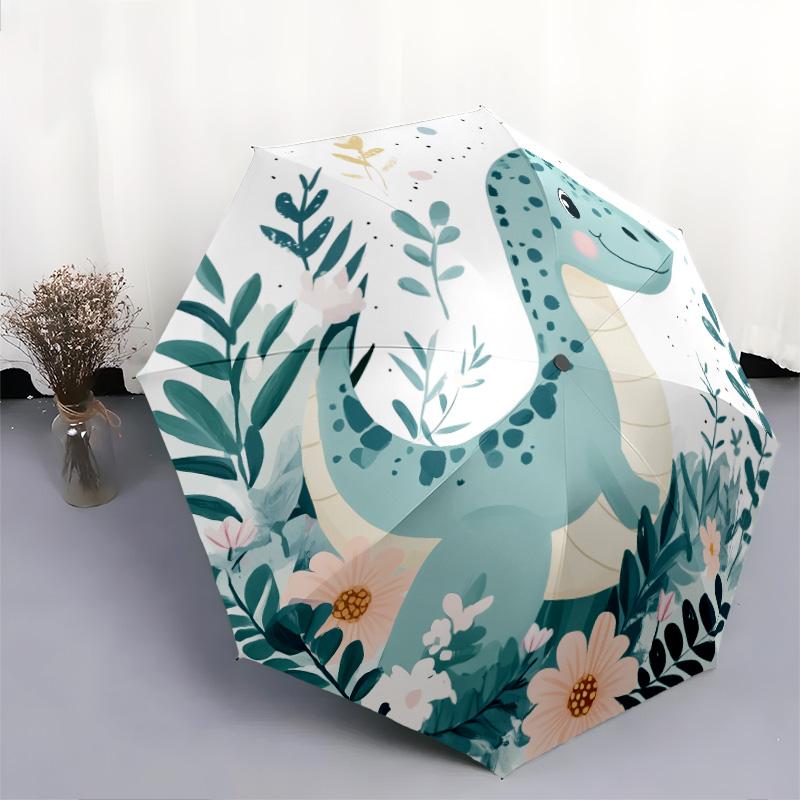 Flower Dinosaur pattern, automatic folding umbrella, portable and foldable design, 8 ribs, a Christmas or birthday gift.