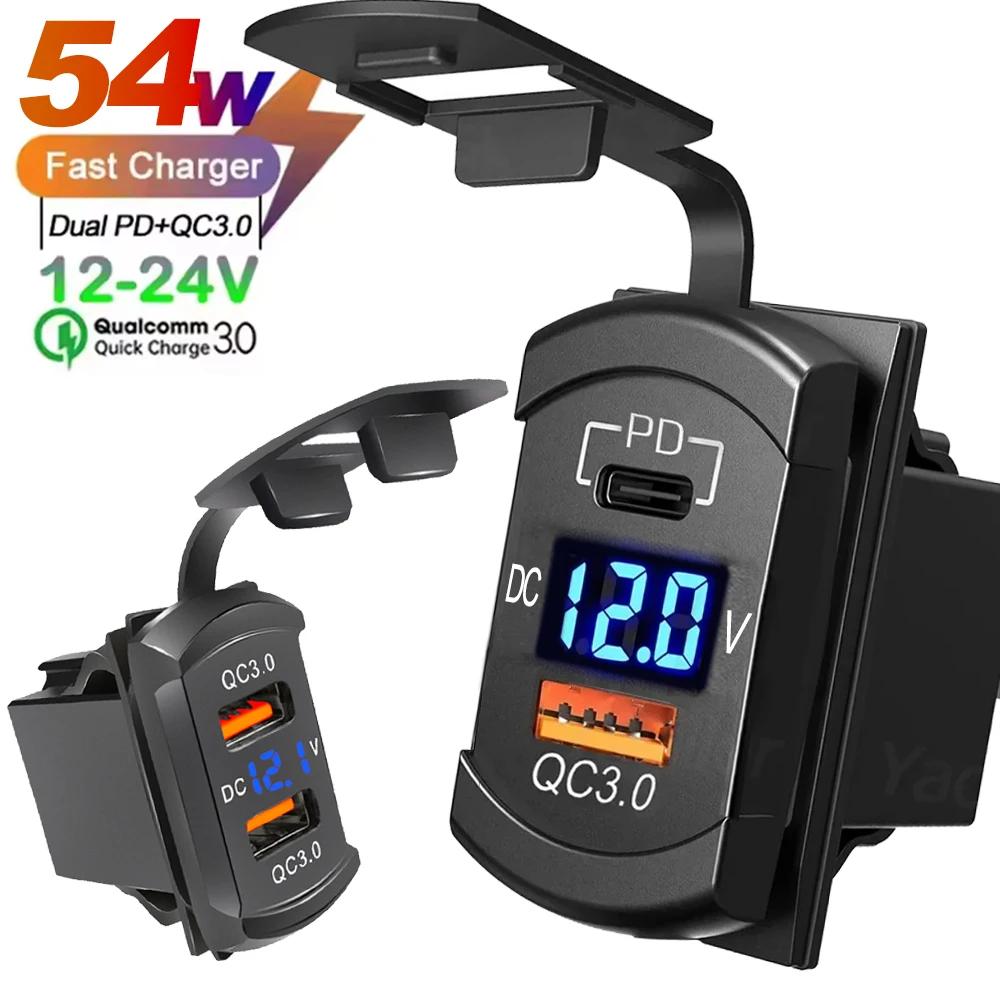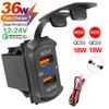 12V USB Rocker Switch 36W USB & PD Outlet Socket with LED Voltage Display 18W QC3.0 Charger for Cars Trucks Vans Boats RVs