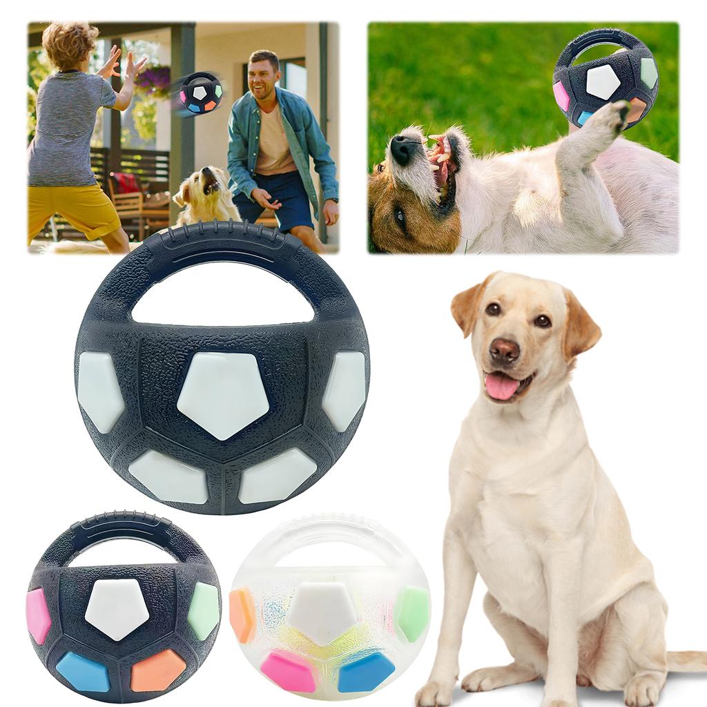 Dog Calming Ball W/ Handle Rubber Football Shape Pet Dog Toys Interactive Squeaky Pet Football for Large Medium Small Breeds
