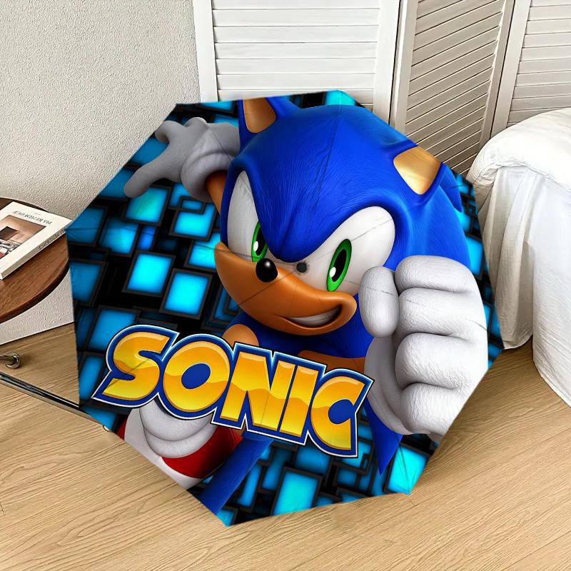 1pc Sonic The Hedgehog Automatic Folding Umbrella, Heavy Duty 8 Rib Iron Frame, Suitable for Travel, Daily Use, Birthday, Decor Gift m0104055