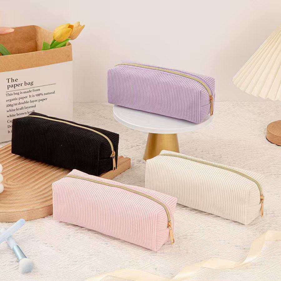Retro Kadife Düz Renk Kalemlik Kalem Kutusu Sanatsal Minimalist Kırtasiye Saklama Çantası Kalem Kılıfı Okul Öğrenci Malzemeleri
