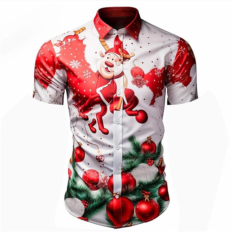 Christmas Shirts For Men Shirt Santa Claus Printed Short Sleeve Tops Festival Casual Unisex Clothing Loose Oversized Blouse 2024