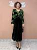 Women's Loose Plus Size Velvet Dress Color-Block Printed Velvet Long A-Line Dress
