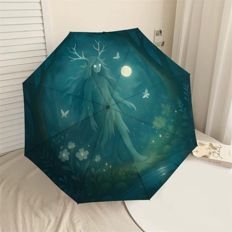 Enchanted Forest Moonlit Journey: A Mystical Umbrella with Automatic Opening & Closing, Perfect for Outdoor Adventures and Travel Accessories 180