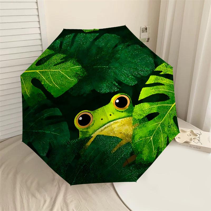 Jungle Adventure Frog Print Umbrella: Automatic Opening & Closing, Outdoor Protection, Lightweight and Durable for Travel, Unique Gift Idea 063