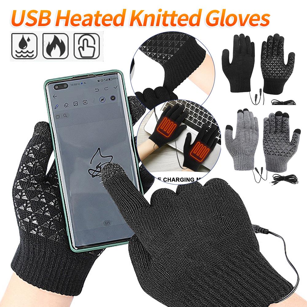 USB Electric Heated Gloves Winter Gloves Thermal Touch Screen Thermal Windproof Warm Knitted Glove Motorcycle Bicycle Ski Gloves