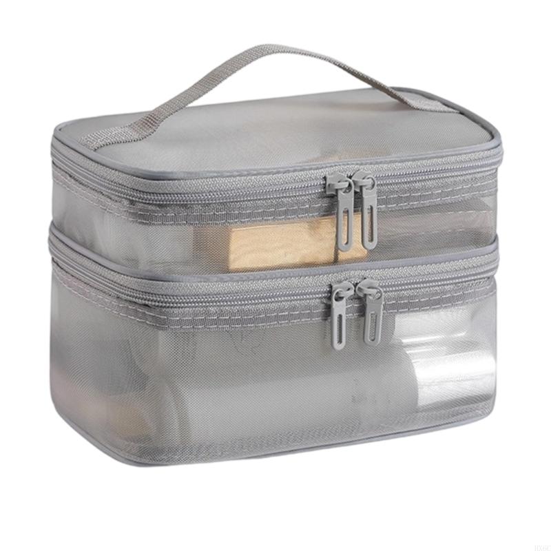 Double Layer Mesh Cosmetic Organizers Bag Durable Travel Toiletry Storage HX6C