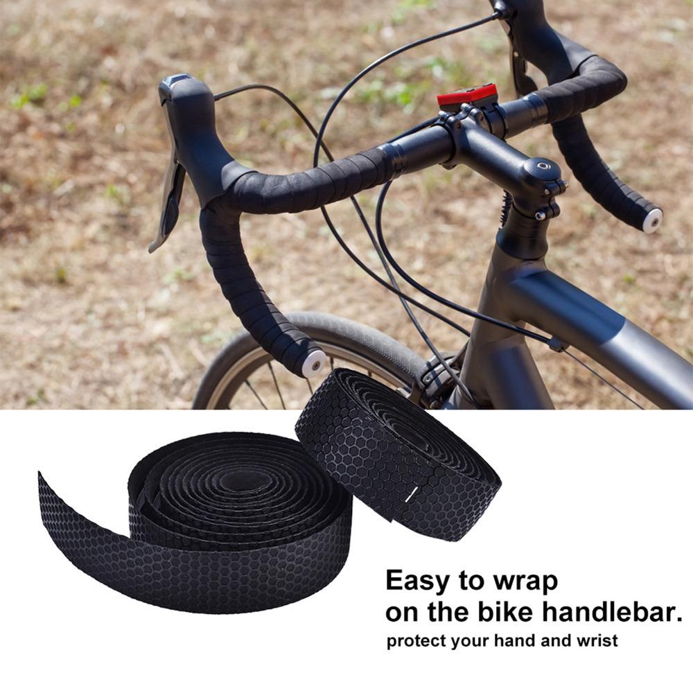 1 Pair PU+EVA Bike Handlebar Tapes Anti Skid Honeycomb Handlebar Grip Tapes with Bar End Plugs Shock Absorption Bicycle Bar Tape
