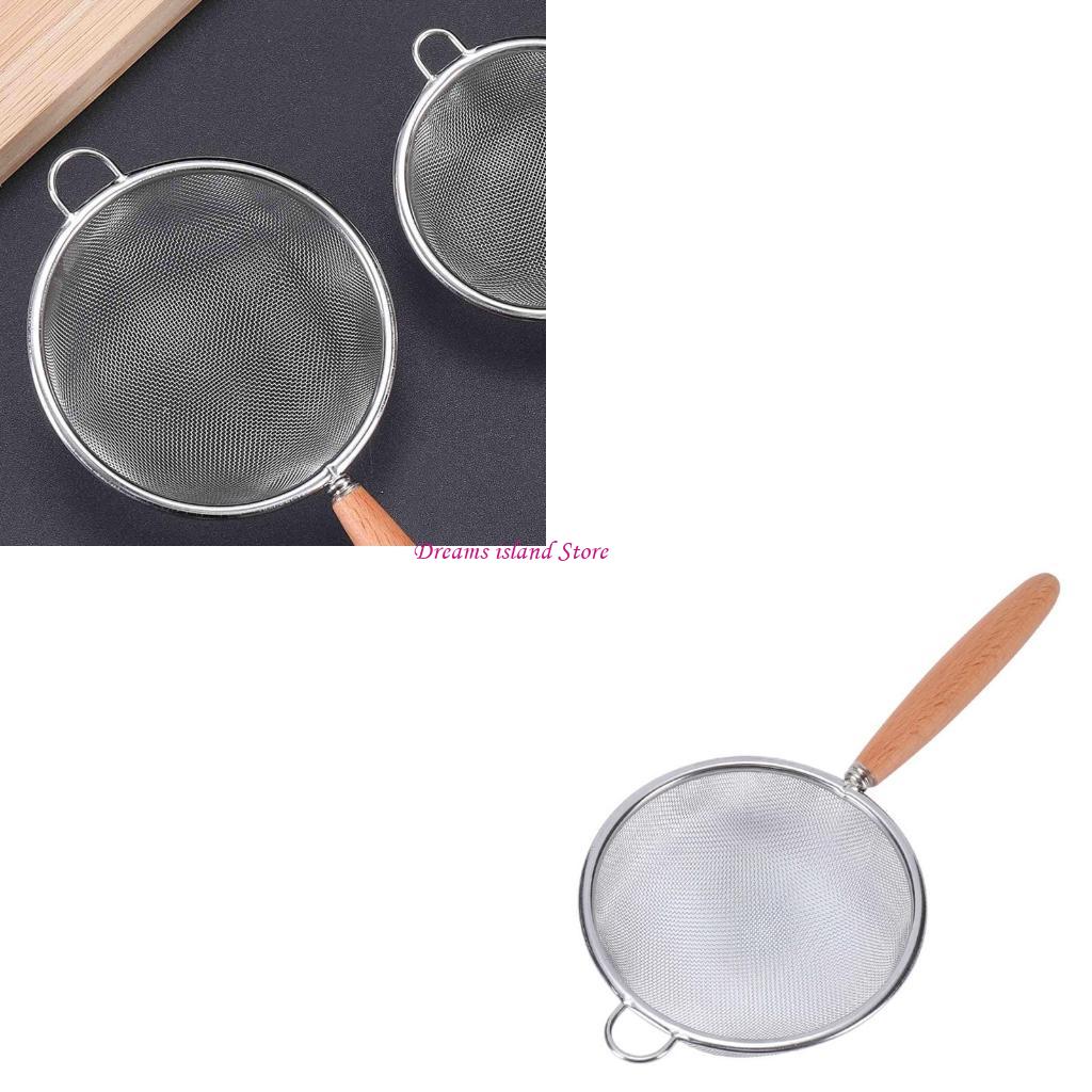 Stainless Steel Colander with Wooden Handle Hanging Ear Sieve Sifter Strainer HX6C