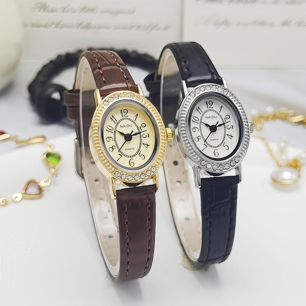 Exquisite Retro Women's Rhinestone Leather Strap Oval Quartz Watch