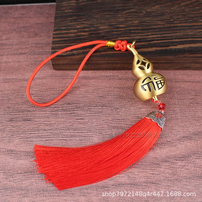 Pure Hollow Carved Five Emperor Coins Perfume Gourd Pendant Copper Coin Chinese Knot Tassel Car Air Freshener Hangi