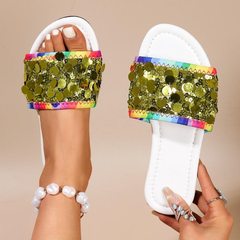 Women's Slipper Women's Summer Wear New Fashion Versatile Sequined Flat Peep-Toe Beach Sandals