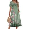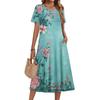 Ladies' Floral Printed Casual And Fashionable Short Sleeved Round Neck Dress