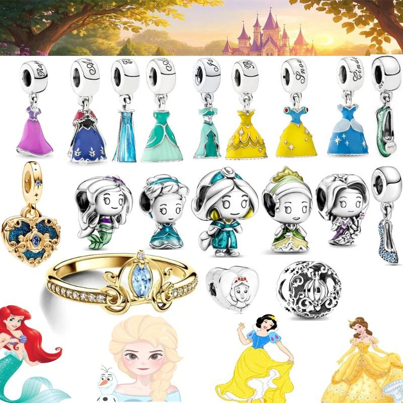 S925 Silver Disney Princess Charms Mermaid Elsa Belle Snow White Beads Fit Original Bracelet DIY Pendant Women Jewelry