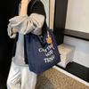 Casual relaxation letter bag women's new fashion college student class shoulder bag denim tote bag
