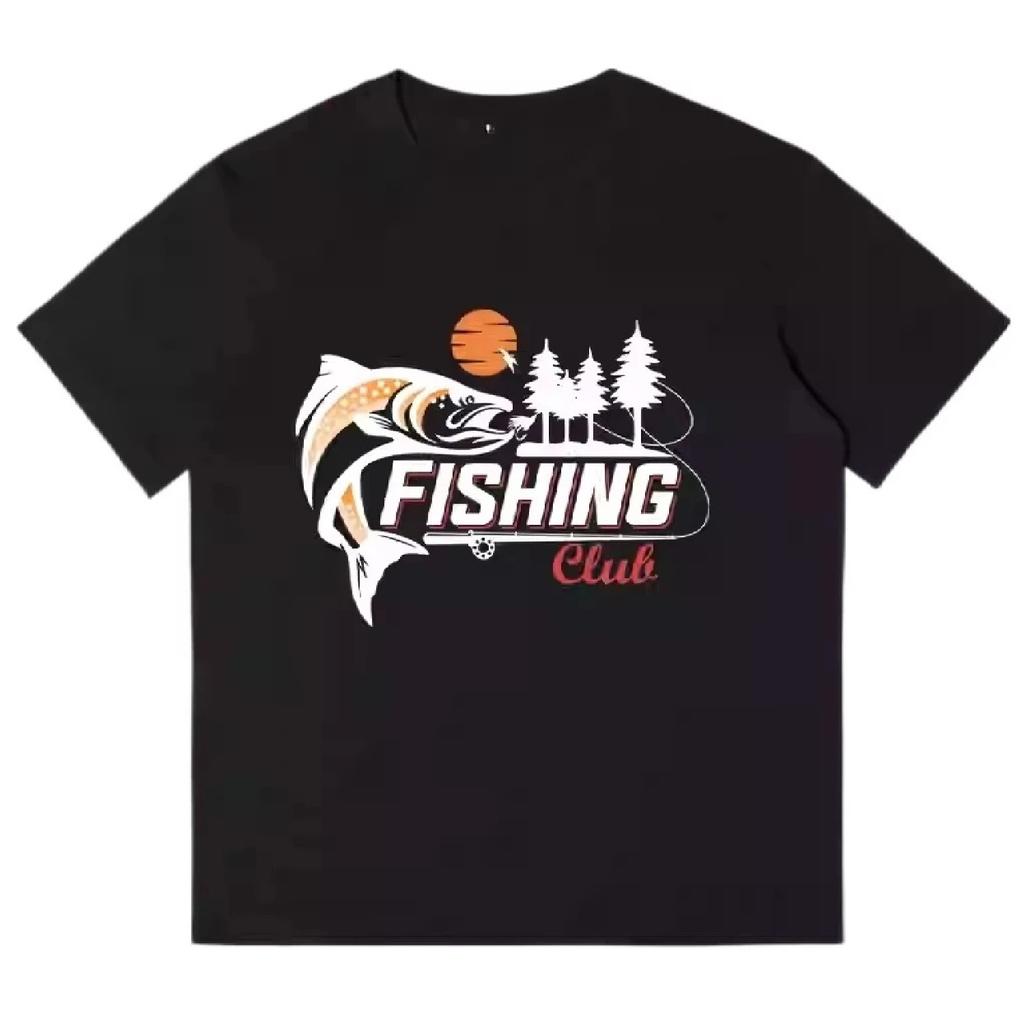 2025 Summer clothes FISHING Club Graphic Printed Children's Tshirt High-quality Short-sleeved Streetwear Kid Oversized t-shirt