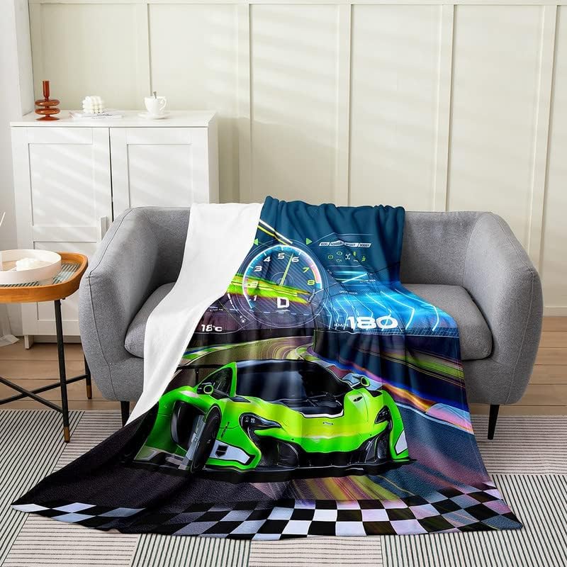 AllSeason Sports Car Bed Blanket Flannel Fleece Throw Microfiber Green Plush Twin Size x for Boys Girls Room Decor