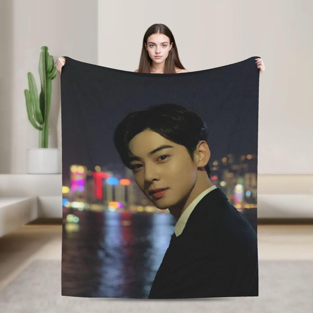 Cha Eun-woo Blankets Warm Street Trend Plush Throw Blanket For Bedroom Picnic Flannel Bedspread Bed Cover