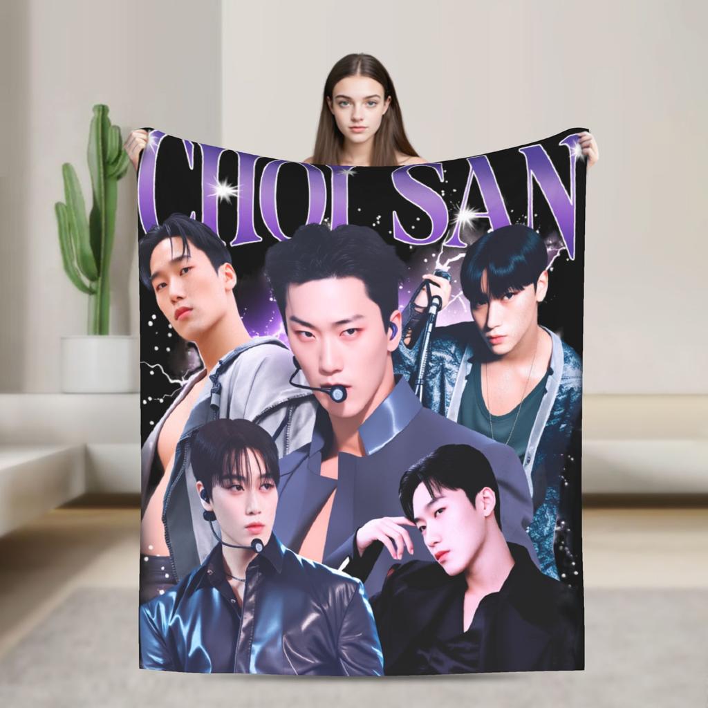 Warm Blanket Travel ATEEZ Choi San Throw Blanket Flannel Bedspread For Couch Chair Sofa Bed Funny Sofa Bed Cover