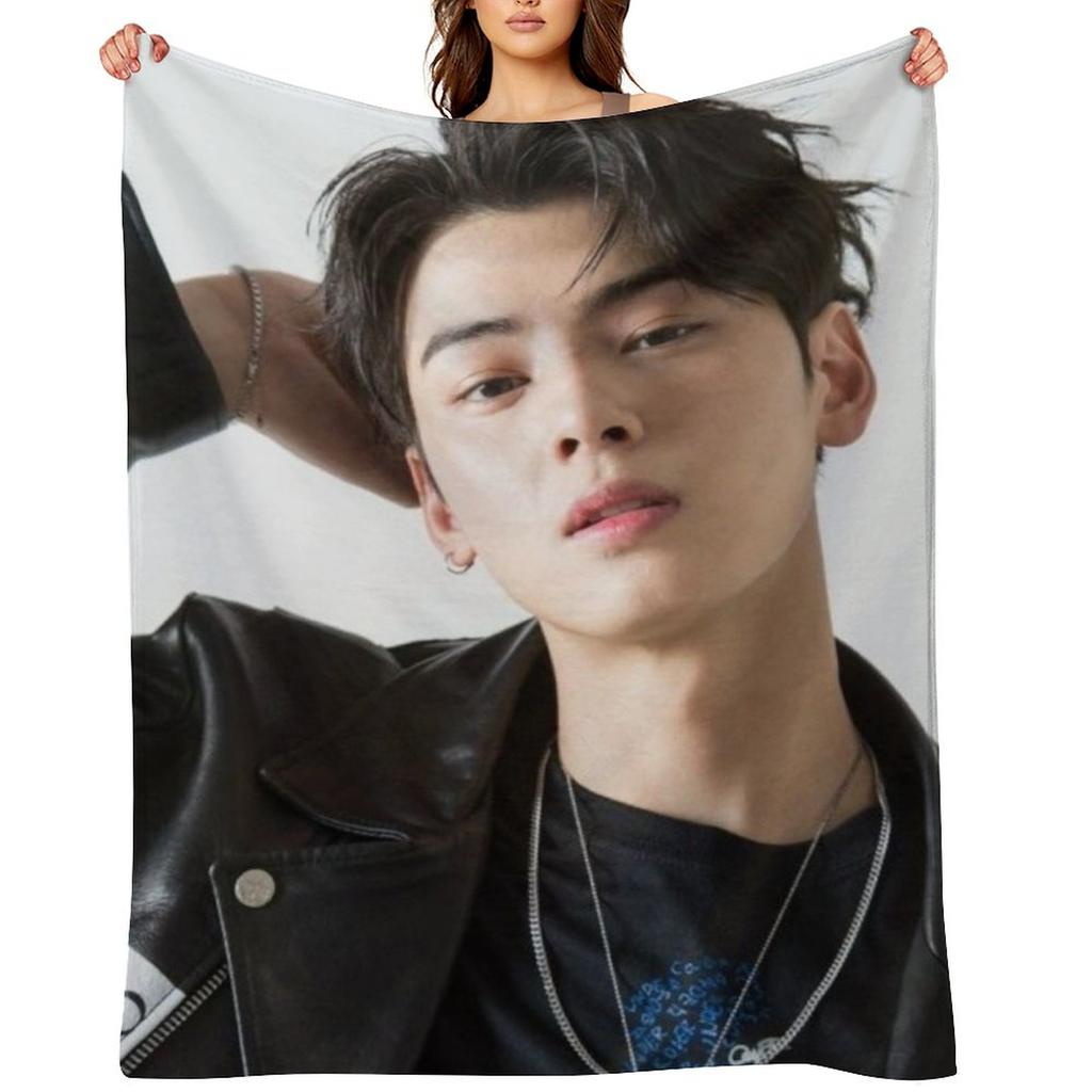 Astro Cha Eun-woo Throw Blanket Camping christmas gifts for winter Cute Plaid Blankets