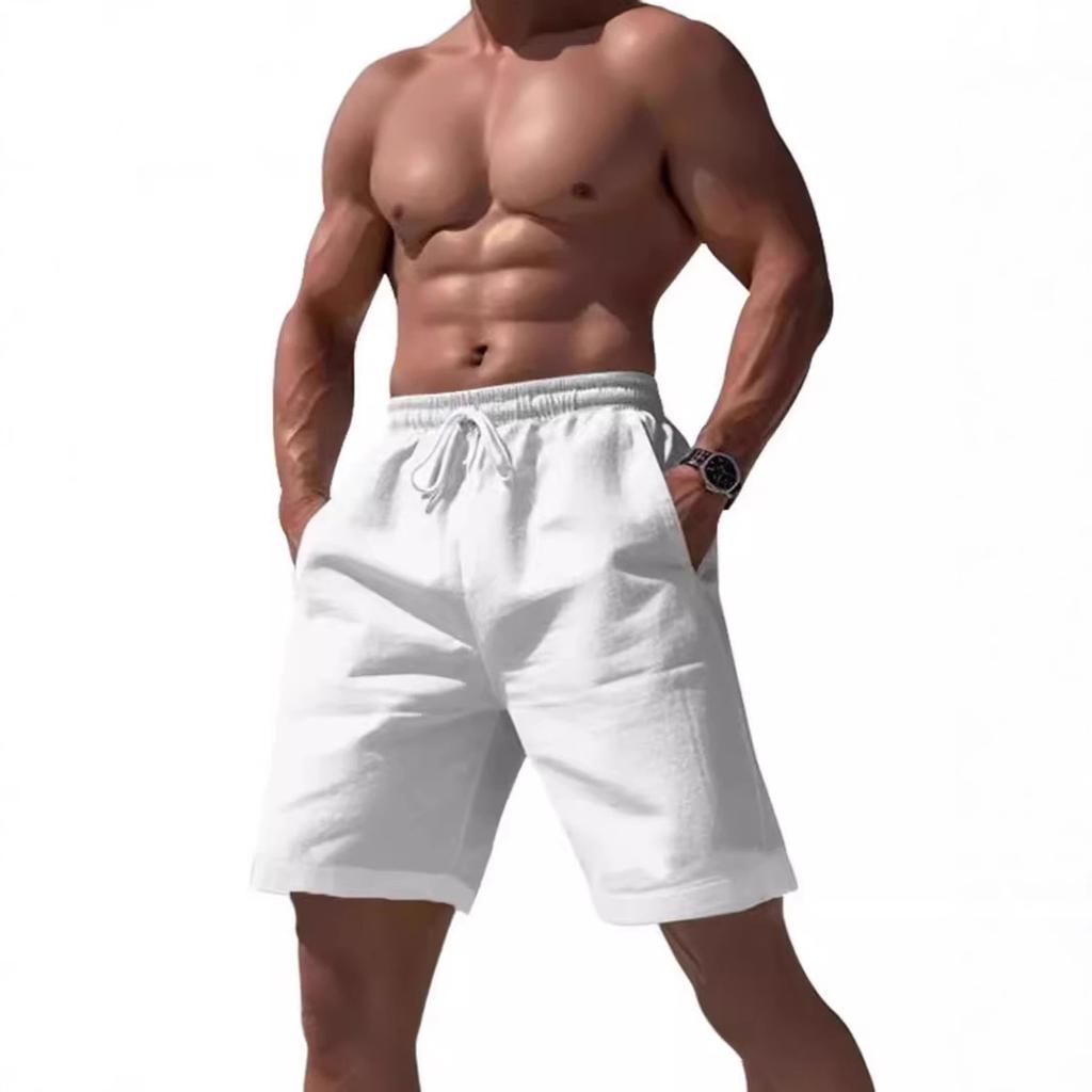 Men's Casual Loose Fit Cotton and Linen Shorts for Beach and Sports