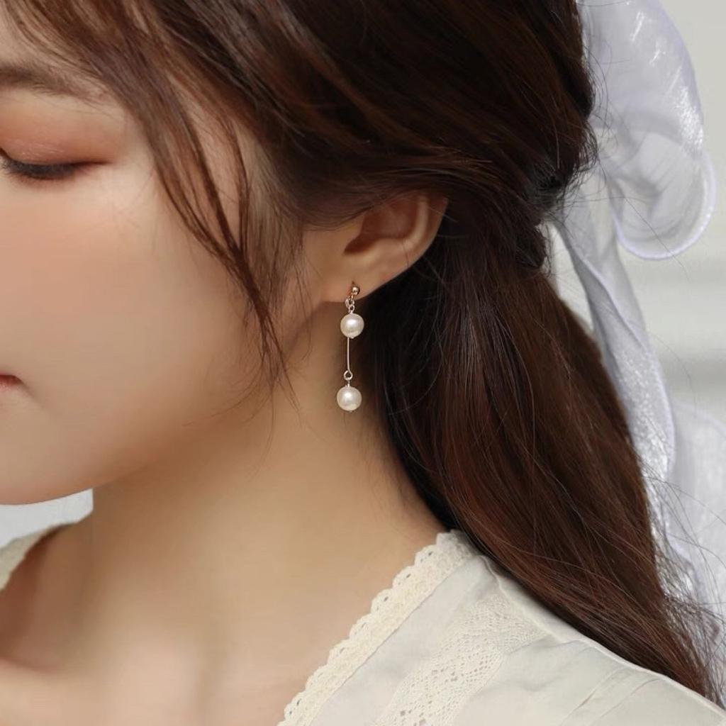 Feedback, natural freshwater pearl earrings, stud earrings, 14K gold-wrapped earclips, niche design earrings, women's earrings.