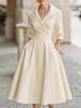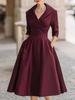 Deep Blue V-Neck Lapel Collar A-Line Midi Dress with Pockets