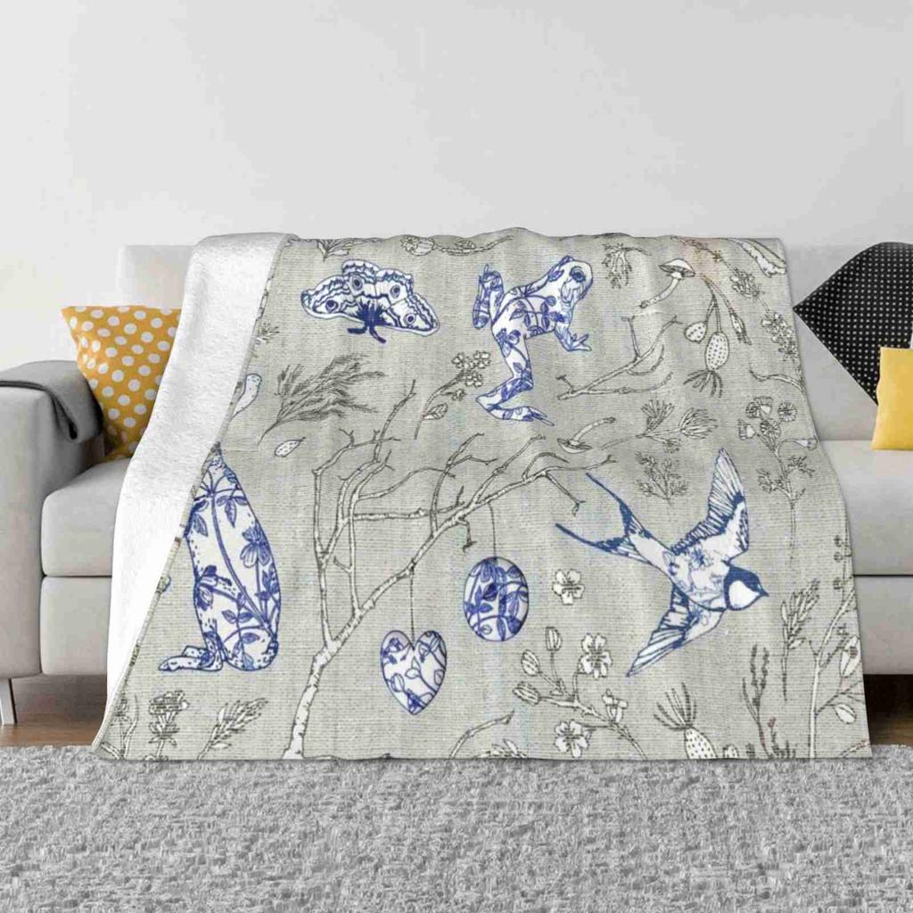 Botanica Wilde Fashion Soft Warm Flannel Blanket Rabbit Blue And White Swallow Garden Sticks Frog Vintage Ceramics Porcelain