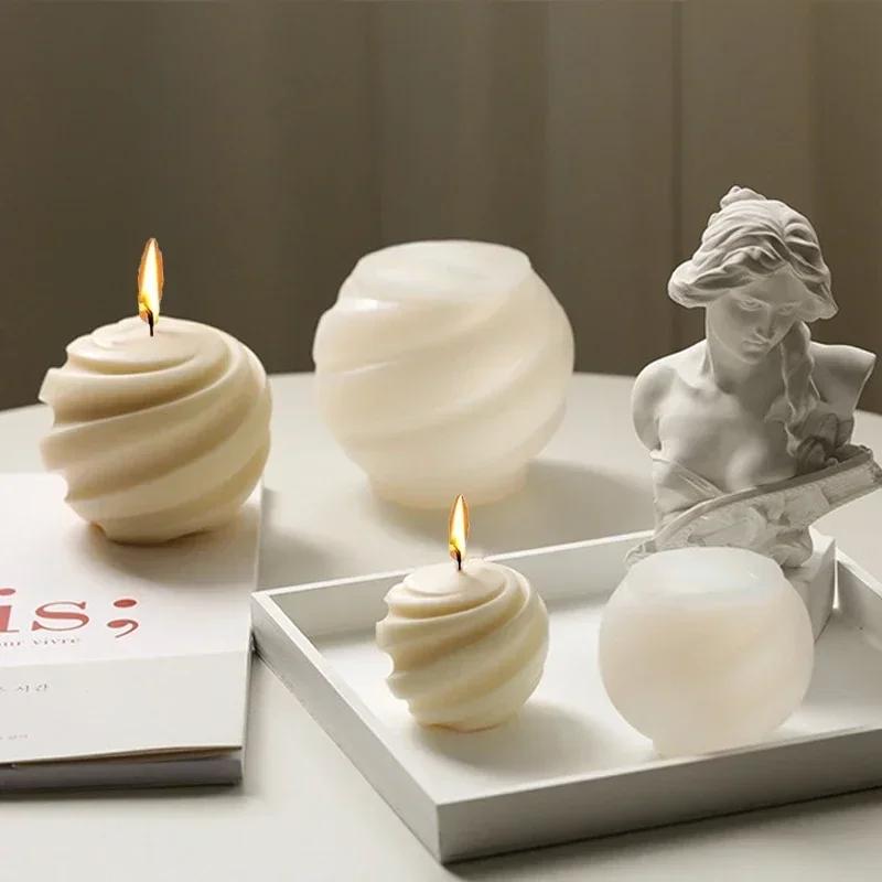 3D Spiral Spherical Silicone Candle Mold Hand Rotating Ball Crafts Gypsum Resin Casting Mold DIY Chocolate Ice Cake Baking Tools