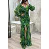 Yellow Floral Off-Shoulder Slit Maxi Dress with Chain Detail